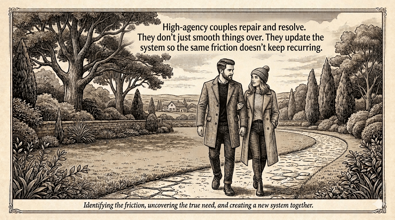 High-agency couples repair and resolve. They donât just smooth things over. They update the system so the same friction doesnât keep recurring.