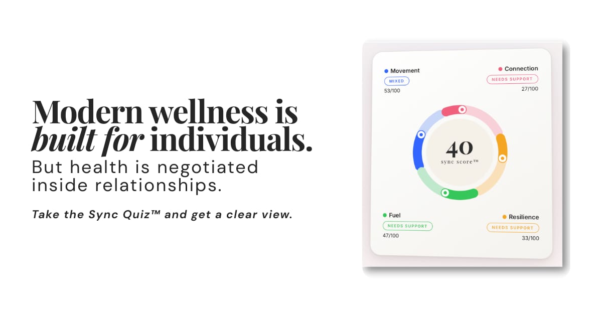 Welcome to Sync & Thrive, the bi-weekly newsletter helping couples strengthen their relationship through shared health. Every Friday, we share real-life reflections and actionable insights. If you were forwarded this message, sign up here.